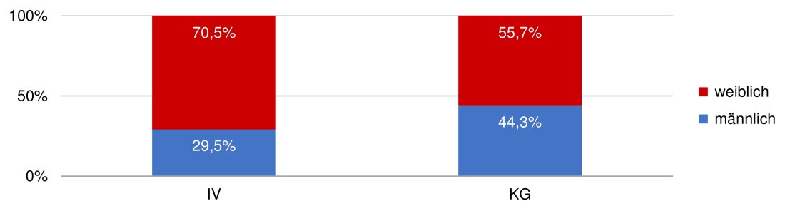 Aufgrund des Projektinhalts fiel – auch im Vergleich zur Kontrollgruppe – der Anteil der Mädchen in der Interventionsgruppe höher aus als jener der Jungen (vgl. Abb. 2).