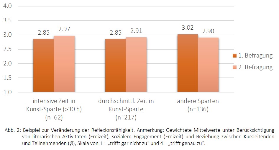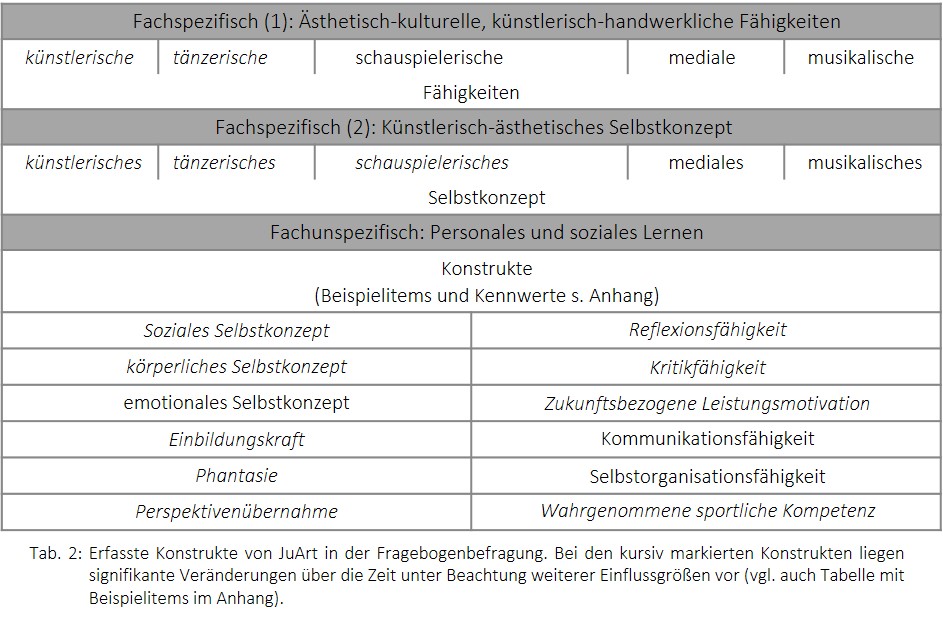 Die Analysen dokumentieren für einige, nicht für alle erhobenen Fähigkeitsdimensionen beziehungsweise Selbsteinschätzungen Veränderungen, so dass insgesamt von einem bedeutsamen Einfluss der kulturell-ästhetischen Angebotsteilnahme ausgegangen werden kann (vgl. Tab. 2).