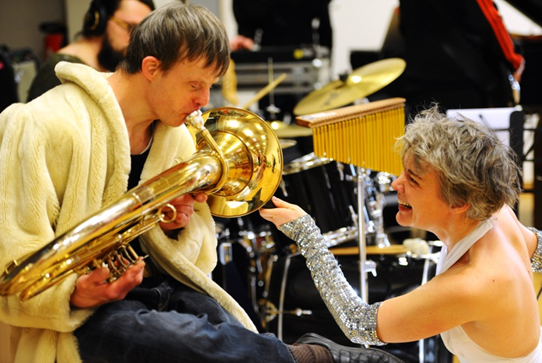 Die Behinderung verschwindet daher hinter dem klanglichen Resultat oder genauer: dem, was dann auf der Bühne zu hören ist, wenn das Ergebnis stimmt. Ein Beispiel hierfür – nicht unmittelbar in unserer Untersuchung beobachtet, sondern mit geschärfter Aufmerksamkeit bei der Echo-Klassik Verleihung 2014 in den Blick genommen: Felix Klieser, ein junger Hornist, wurde als Nachwuchskünstler des Jahres ausgezeichnet. Sein Horn war auf einem Ständer festgeschraubt und stand wie üblich zwischen dem ersten Geiger und dem Dirigenten. Zu Beginn setzte der Solist sich, zog seine Schuhe aus und spielte mit dem linken Fuß sein Solo-Horn. In der Anmoderation der Fernseh-Berichterstattung wurde nicht von (s)einer Behinderung gesprochen, aber es hieß: Schon der Vierjährige habe Horn spielen lernen wollen und konnte nach zwei Jahren dem Instrument schon fünf Töne entlocken. Im Jahre 2014 wurde seine erste CD veröffentlicht. Am Schluss gab es stehende Ovationen des Publikums. Das erfahrene Klangerlebnis machte die sichtbare und auffallende Behinderung unwichtig.